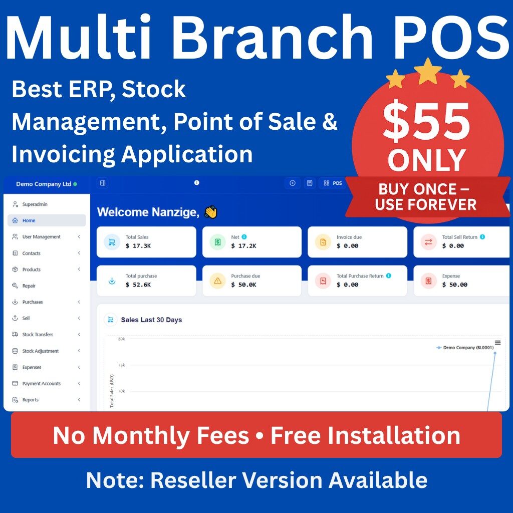 Multi-branch & multi-warehouse: Create separate locations and manage stock, purchases, and sales per branch, with consolidated reporting.